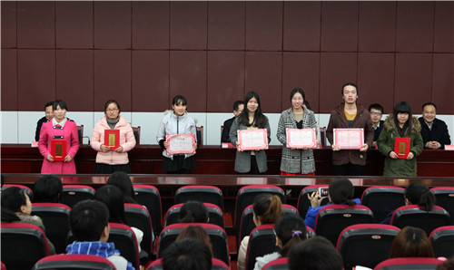 校党委宣传部副部长武林波宣读了《宁夏大学第二届大学生记者节表彰决定》,赵利宁为受表彰的单位和个人颁奖。经济管理学院、数学计算机学院、音乐学院获得先进单位;何俊杰、张娜等获得先进个人称号。
