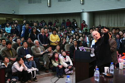 这是校党委宣传部、对外合作交流处举办的文化名人进校园系列活动——报告会的第十八场。