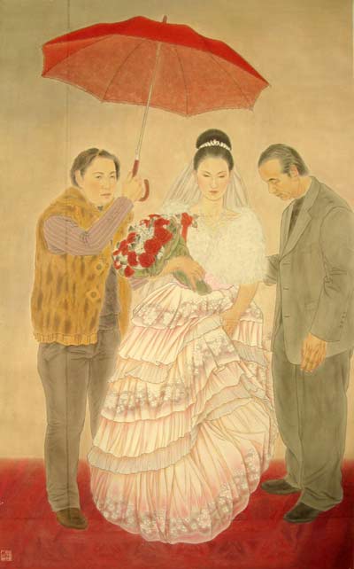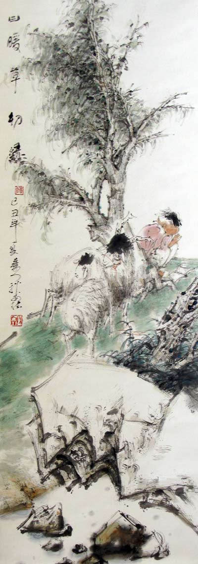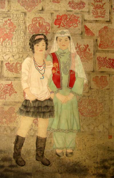 中国画《小姐妹》朱淑娥 美术学院讲师