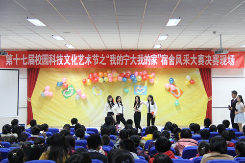 【宁夏大学新闻中心讯 团委】11月19日,由后勤集团、校团委主办、校学生会承办的宁夏大学·宁夏电信“天翼杯”第十七届校园科技文化艺术节系列活动之“我的宁大我的家”宿舍风采大赛决赛在校本部A区文科楼东报告厅举行。学生处副处长、学生资助管理中心主任马玉玲,后勤集团副总经理马彦峰,校团委副书记肖功国及各学院学生代表300余人参加并观看了比赛。