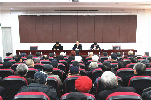 金能明书记在会指出,要切实提高对做好老同志工作的思想认识,加大工作力度,发挥党建优势,做好离退休老干部的服务工作;各级领导要提高服务质量和工作水平,健全工作体系和服务机构。各级领导、学校各部门对涉老工作要全覆盖,把做好涉老工作作为自己分内的事情,搭建充分发挥老同志余热的平台;全体老同志要紧紧围绕学校各项中心工作建言献策,发挥余热。老干部是学校建设的一支重要力量,要明确学校的发展目标和定位,立足宁夏,面向西部,放眼世界,把宁夏大学办出特色、办出优势。要建设和发展宁大命运共同体,分享学校近60年来的建设成果。紧紧围绕总结“十二五”、谋划“十三五“,深化学校的综合改革,认真分析并抢抓学校面临的发展机遇,同时找到制约学校发展的瓶颈,集中老同志的经验智慧,让老同志充分贡献自己的良策良方,调动各反方面的积极因素,推动学校的全面发展。金能明代表校党委、行政向长期以来关心、支持学校建设与发展的全体离退休老同志表示忠心的感谢,在辞旧迎新之际,祝老同志身体健康、家庭幸福,度过一个幸福安详的晚年。