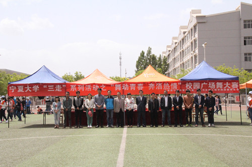 【宁夏大学新闻中心讯 团委】5月14日,由校团委主办,土木与水利工程学院团委、学生会承办的宁夏大学“走下网络、走出宿舍、走向操场”大学生主题群众性课外体育锻炼活动之“舞动青春 奔洒热情”校园广场舞大赛在校本部C区田径场顺利举办。校党委副书记赵利宁,团委副书记马慧,土木与水利工程学院党委书记马正亮、副书记张强,校学生会主席夏金柱及全校15个学院代表队的同学共同观看和参加了本次比赛。