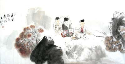 秋霖,原名郭琳。1967年出生于陕西省乾县。1991年毕业于西安美术学院中国画系,获学士学位。同年分配到宁夏教育学院美术系。1997年考入西安美术学院国画系人物专业研究生,2000年获文学硕士学位。现为宁夏大学副教授、.美术系主任、宁夏美协副主席、中国美术家协会会员。