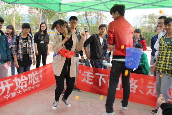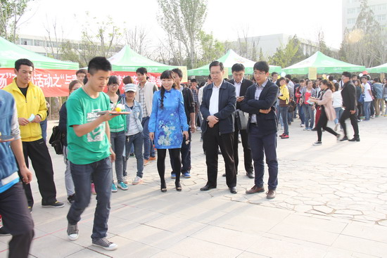 【宁夏大学新闻中心讯 团委】4月28日,由校团委主办,,校学生会承办的宁夏大学“三走”系列活动之“与青春同行 与梦想齐飞”春季园游会在校本部B区文化广场举办。校党委副书记赵利宁、校团委副书记马慧、肖功国及来自全校20个学院代表队的同学共同观看和参加了比赛。
