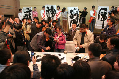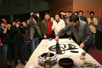 王德林先生用深入浅出、生动幽默的语言,以他走过的30年心路历程将其对书法与人生的理解和感受娓娓道来。我们看到了他那磨满老茧的双手,他说,习练书法是一个艰辛的历程,会碰到许多困难,不仅是体力上的、精神上的,还有知识上的。书法没有假,它是一种蕴含着功力、意志和意念的综合反应。他说,人要实现自己的人生理想,首先要准确定位,这里面包含着科学的内涵,需要有广泛的知识去谋略;其次要有坚强的意志,克服困难的勇气,用毅力去支撑。他在书法练习的过程中总结出了四个字:气静运来。运气来源于静,只有静,才能深刻挖掘思维,智慧来自于深度的思考。正是因为书法能够开启人的思维,净化人的灵魂,磨练人的意志,所以它博大精深,足以令后世不断地咀嚼探索,开拓创新。