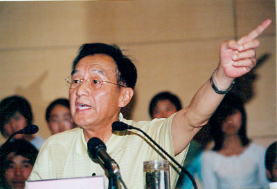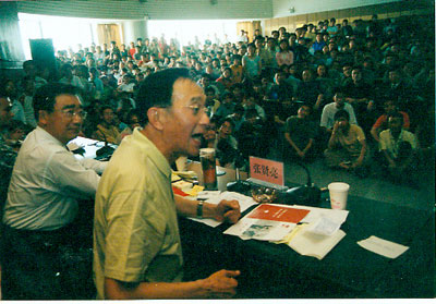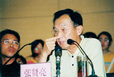 陈育宁校长对张贤亮先生做了简短介绍后,对话会正式开始。对话中,同学们向张先生先后提了19个问题,内容涉及校园文学、影视企业发展、农民工、大学生成才与就业等问题。张先生遂一一做了简明流畅的回答。对话中,有学生提出了一些尖锐的问题,但张先生始终没有表现出丝毫的尴尬或不快,且巧妙作答,尽可能令提问者满意。在问答中,张先生还不时地以表情和眼神与提问者交流,使同学们忘却了紧张,会场气氛更加轻松活跃。先生风趣幽默、睿智严谨的回答不时引出师生们会心的笑声和阵阵喝彩。在对答中,张先生还结合自身经历给学生们上了一堂生动的人生哲理课,他鼓励青年学生们树立成才意识,培养吃苦耐劳、勇敢挑战的精神,要学会在逆境中成才,要多吃些苦,否则将来就难以立足社会。