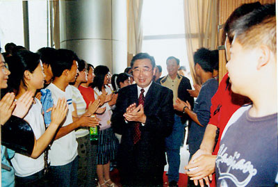 对话会即将结束时,张贤亮先生当场承诺,每年拿出1万元钱资助我校贫困生,赢得会场雷鸣般的掌声。