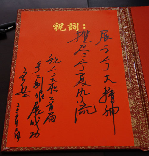 展览之余,齐岳书记兴致勃勃地为本次展览题词——“展示宁大精神,揽尽宁夏风流”。