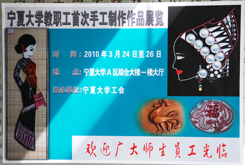 3月24日下午,由校工会主办的宁夏大学教职工首次手工制作作品展在A区综合楼一楼大厅开展。
