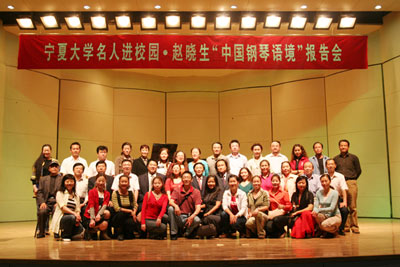 贯穿于报告全过程中的,是赵晓生教授风趣、幽默、生动地讲授,对中西方钢琴作品的激情演绎和会场频繁爆发的热烈的掌声、喝彩声。大师融汇古今中外的渊博知识、深厚的钢琴演奏功力、敏锐的洞察力和独特的视角令现场师生无比崇敬和折服。特别是赵教授现场即兴创作并演奏的钢琴曲《西夏印象》令在场的所有听众叫绝和震撼。报告会结束后,师生们久久不愿离去,掌声持续不停。