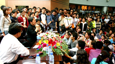 整场报告热烈紧凑,会场气氛高涨,有人甚至提前三四个小时前来占座,不少观众专程赶来却未能看清楚重重人墙之中席慕蓉女士的身影。席慕蓉女士以她谦虚平和的品质折服了在场各位听众,她深沉细腻的情感不时感染得大家热泪盈眶,风趣幽默的谈吐赢得了阵阵雷鸣般的掌声。