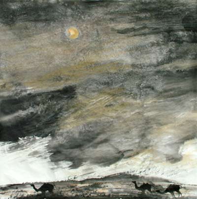 我们都能感受到西部山水的荒凉美,寻找到大自然的影子,而且也能寻找到画家心灵的轨迹和情感的宣泄。中国书画相通,山水画和花鸟画更不分家,早在学画时撖学文就认真学习人物、山水、花鸟、书法等各门课程,从不偏科,这为他今天奠定了扎实的基础,厚积薄发,只有积到一定程度才能显出成效。2002年在中央美术学院访学时,他常去听贾又福先生的山水课,王镛先生的书法课,并主动随陈平、何加林先生到皖南写生,获益匪浅,当时有人不能理解他的用心,今天你看到他的山水画或许能明白他是个有心人。