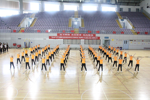 【宁夏大学新闻中心讯 团委 体育学院】近日,由校体育运动委员会、校团委主办,体育学院承办的宁夏大学“三走”活动暨第九届全民健身体育文化节系列活动之大学生广播操推广赛在校本部C区大学生活动中心成功举办。我校各学院代表队及200余名观众观看比赛。