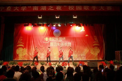 【宁夏大学新闻中心讯 民族预科教育学院 谢静雯/文 李涛/图】5月15日,宁夏大学第十七届校园科技文化艺术节系列活动之“南湖之夜”校园歌手大赛在宁夏大学南校区大学生活动中心隆重举行。校团委副书记肖功国、音乐学院副教授纳少、、民族预科教育学院党政领导及新疆内学办挂职干部出席大赛并担任评委。来自宁夏大学南校区的1000余位学生观看了本次比赛。