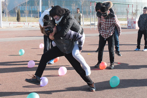 各学院代表按分组依次比赛,“最慢自行车”、“转呼啦圈接球”、“瞎子背瘸子”、“鲤跃龙门”等游戏妙趣横生,体现了各代表队成员的默契配合,在之后的“扎气球—猜教室—你比我猜—齐心协力”游戏接力环节中,各学院代表更是齐心协力,将活动气氛推向高潮。
