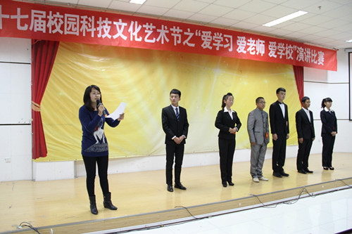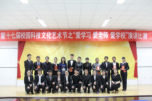 比赛分为自我介绍、限时定题演讲和词语接龙三个环节。在各个环节中,各位选手举止大方、思路清晰、从容不迫,洋溢着青春的气息,展现了他们较高的语言文字运用能力。在演讲环节中,选手们分别从不同角度抒发了他们对学习、老师和学校的强烈的热爱之情,选手们演讲诙谐深情,纵横捭阖,饱含深情,打动了每一位在场的观众。经过激烈角逐,新闻传播学院的贾文德以全场最高分荣获一等奖,经济管理学院的白涛、外国语学院的解澄澄荣获二等奖,政法学院的张扬、数学计算机学院的庞婷婷、资源环境学院的马荣荣获三等奖。