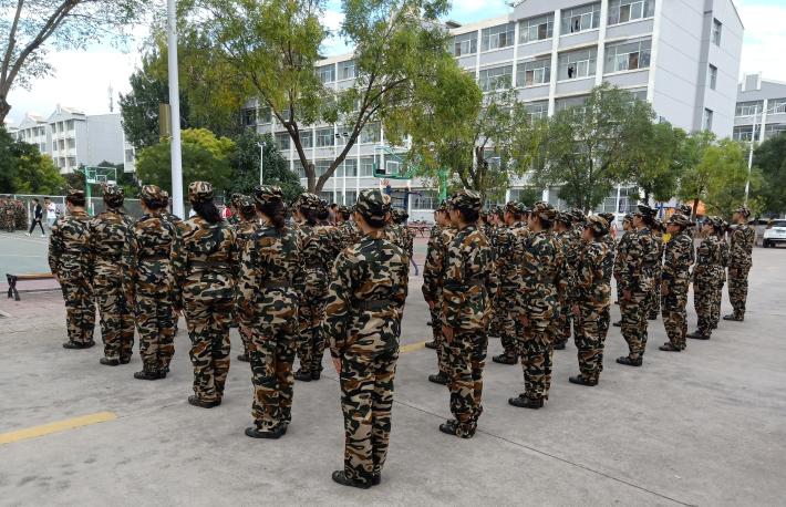 步伐整齐意志坚,树影斑驳映开颜。