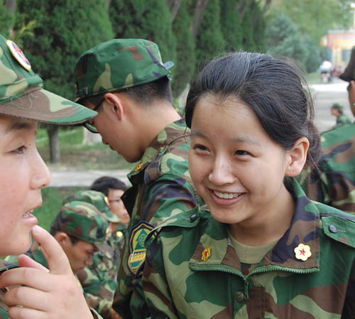 这期间有苦有乐,苦乐之间,我们少了份娇气,多了份坚强;少了份依赖,多了份自强;少了份怨天尤人,多了份勇往直前。少女心中的梦在这个炎热的夏季,在流泪流汗的军训场上,愈来愈真实。