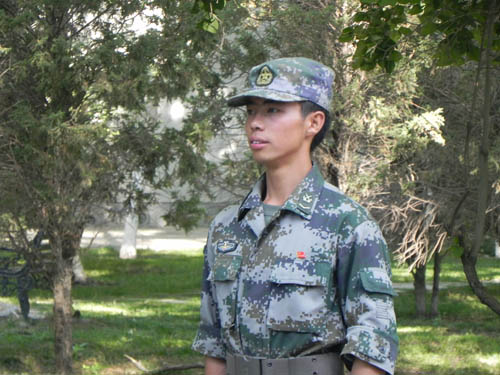 几天的军训,宽敞的马路成了我们的战场,而在这个战场上我们就是一道亮丽的风景线。整齐的队列,笔挺的身子,是我们用意志描绘的风景;震天的呐喊声,嘹亮的歌声,是我们如虹的气势,在生科院上空久久回荡,休息中我们认真的学习了平时并不熟悉的军歌,在歌曲中我们感悟到了当代军人的风采。
