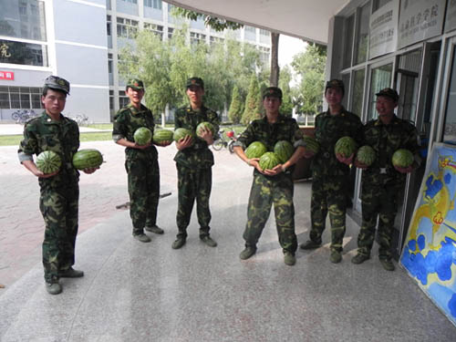 怀抱着沉沉的西瓜,回想着已逝的军训时光,我们用微笑期待着未来!