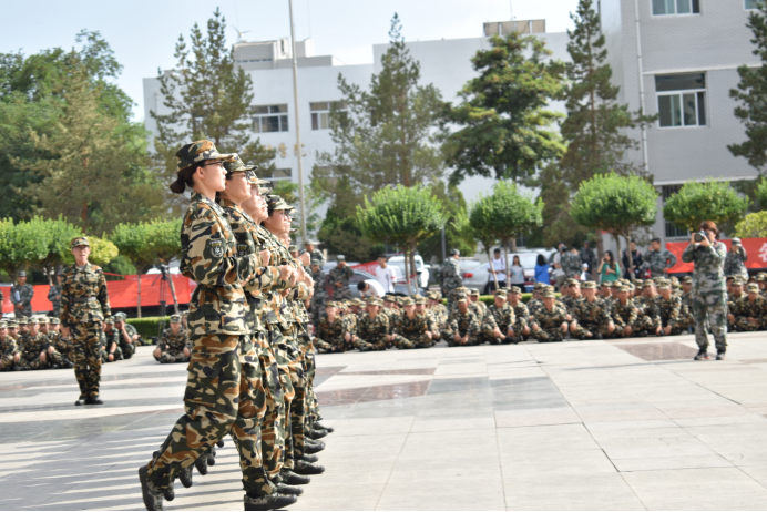 千淘万漉虽辛苦,吹尽狂沙始到金。训练虽不及军旅严苛,亦有身披戎装,保家卫国之感,泛舟学海,尚思为国戍轮台,以一鼓作气之勇,习军人艰苦卓绝之风,铸军人坚韧不拔之魂!