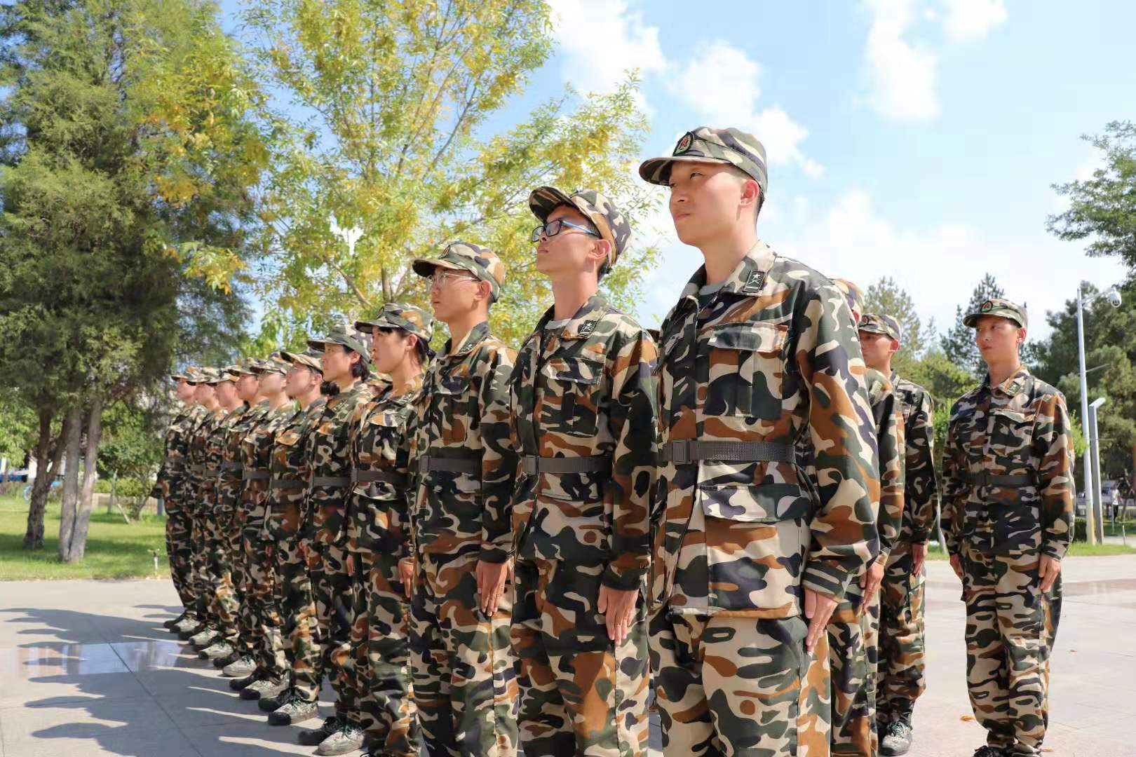 阳光洋洋洒洒的落下,落在数统学子弯弯笑眼里,落在我们那微微向上翘起的睫毛上,落在我们那身洋溢青春色彩的迷彩服上。
