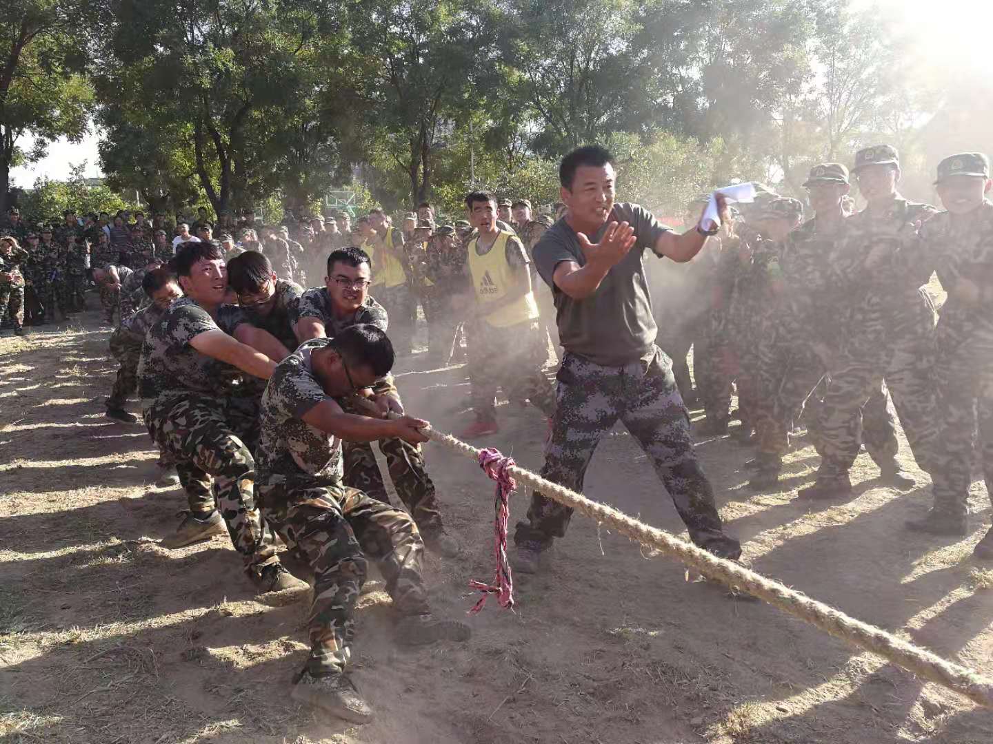 为了丰富我们的军训生活,学校为我们安排了拔河比赛,从而使我们懂得更加团结同学。生活就如拔河,坚守内心,永不放弃。现实中的种种艰难,都是为了磨砺我们的追求,塑造真正自我的灵魂,只有流过血的手指,才能弹出倾世绝唱,只有在这不断淬炼中的坚守内心,才会“守得云开见月明”,只有与现实拔河,才能“直挂云帆济沧海”。