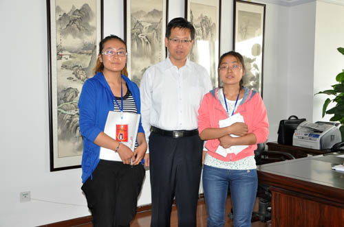 顺顺梳理整齐的马尾,摸摸胸前的记者证,抚抚不按规律跳动的心,做好充分准备的我还是按耐不住兴奋。办公室里书架上的书整齐有序,墙上山水画渲出的墨色染得一室安静素雅,办公桌和待客的茶几上放好的文件一摞又一摞。赵利宁副书记刚刚处理完校务回到办公室都没有顾上休息就热情地接受我们的采访,他听到我们是来自化工学院的学生记者时非常震惊道:“理工科的学生做起文科生的记者工作毫不逊色,甚至更甚一筹,看来我们宁夏大学学生的素质是相当高的啊!”在赵利宁副书记的笑声中感受着他对我们的赞美,心里美滋滋的,大脑中紧绷的弦渐渐放松的那一刻,您就在我们身边。采访就这样别开生面的开始了。