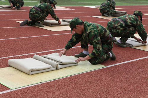 既然是军训,自然免不了苦,每天重复走正步,站军姿,唱军歌,最要命的是七月的阳光太过炙热,很多时候,我都可以感觉到细密的汗珠从背脊一路蜿蜒流下,一天训练下来,穿在里面的衬衫早已湿透,黏腻腻的,实在难以忍受。但令人感动的是,教官们总会尽量带领我们到阴凉的地方训练以稍稍缓解酷暑的侵袭,很用心,很心疼我们,这些,我们看在眼里,记在心里。教官总说:“你们肯定都恨死我了,你们就当眼前站的是我,你们使劲踢,一定能踢到我,这样你们就能踢好正步了。” 其实我真的很想说,我们一点都不恨你们,相反,我们都因你付出的汗水和努力而感动。