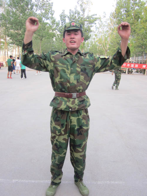“不抛弃,不放弃!坚持到底!”排长李八尺有余,而形貌昳丽。朝服衣冠,奔跑于操场上,引无数晨练小兵尽折腰。这个小伙子,总是满怀年轻人的热血澎湃,有他在的一排总是热闹非凡,士气冲天。休息的时候,此排的军歌总是唱不完,也绝对是唱得最响的,李排长还时不时地挑逗一下隔壁的兄弟排,自己唱得激情四射,人家愣是一句不回。我是战士我怕谁?无畏无惧争荣誉。蚊子骚扰给你打蚊子,寂寞的时候给你唱军歌,渴了为你倒水……他像“六神”般呵护着他的兵,驱除着酷暑的焦躁难耐,信李排长者,得永生,必将如“神六”般一飞冲天!