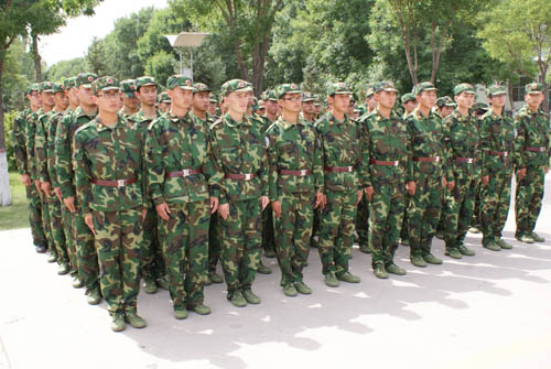 【宁夏大学新闻中心讯 一营五连(体育学院)王洋/文 刘钰/图】晴空万里,烈日炎炎,骄阳似火中,军旗猎猎。2012年7月11日,体育学院11级全体学生在校本部五四广场参加了2012年宁夏大学一营军训动员大会。