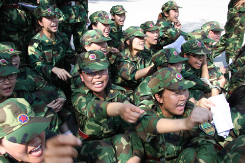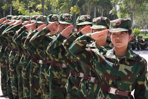 不知怎的,今年的教官真少,我连虽有四个排的兵力,却只派得三名承训官兵。“这可如何是好?”“教官怎么少了呢?那军训……”同学们面面相觑,心里直犯嘀咕。正值当时,院领导张宁书记面溢微笑,站在麦克风前宣布重要决议:“正式任命我院10级化工2班郭佳同学为一排教官。”郭佳瞬时出列,已标准的军人之式跑步上前,沉稳有力的跺脚声,铿锵有力的一声“是”,端庄严肃的一支军礼。“平日熟识的同学,我们的新教官?!”