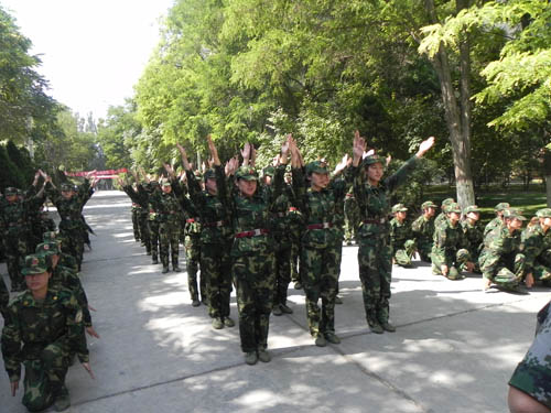 最近几天早晨,太阳还未升起的时候,绿色迷彩就开始行动了,在学校的每个角落,都有着它的独角戏。绿茵茵的一片,像绿色的小灌木在风中舞动,缓缓地,缓缓地,摆动着,各种身体动作相互串着,迷彩也参与其中,它变换着自己的模式,为了呈现他所象征的军人本色。
