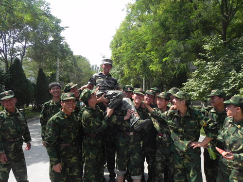 就是这迷彩,使女生们变得更加的靓丽,穿上它,没有了前凸后翘,没有了娇柔妩媚。但是却让我们有了义气方刚,青春活力。时不时校园里会有穿裙子的女孩子,虽然她们亭亭玉立,虽然她们活泼可爱,虽然她们娇艳欲滴,可与这迷彩相比,却少了一番别样的味道。