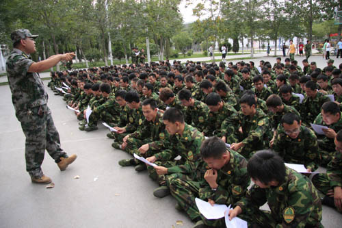 一排排整齐的女兵站着军姿,英姿飒爽、昂首挺立。曹连长背着手在队列前巡视着,汗水从脸颊流下,背衫紧紧贴在后背,曹连长严肃的表情令人生畏,女生一个个在他面前站得挺直,生怕被他看出有不规范之处。曹连长走过前排,突然几个女生忍不住笑了起来,曹连长敏锐的耳朵立刻捕捉到这轻微之声,回过头,严厉的面孔显得有些可怕“刚才谁笑的,站出来”,没人动,“那好,既然没人承认,全排罚站十分钟。”女生一个个沉默不语,曹连长刚转过身,女生一个个脸上又露出了笑的痕迹,但没人出声,曹连长似有所察,但没有再回头。连长无意间的一个低头,发现自己的裤子破了——好像若有所思,不禁也嘿嘿笑了起来。