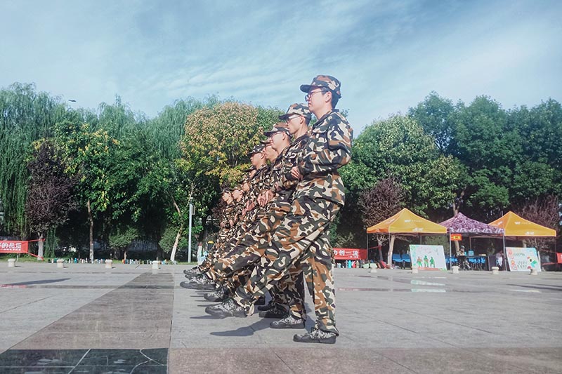 炎炎烈日下,毒辣的太阳光压榨着大地的水分,宁夏大学的校园里一营二连的军训学生们站立在五四广场上,瞧,他们如青松一样扎根在这块土地上,贴紧的手臂纹丝不动,坚毅的眼神望向前方,英姿飒爽,军容整齐,他们用行动来证明自己配得上臂上的军徽。阳光将他们的身姿拉长,显得高大伟岸,在军训场上,在金波湖旁,在学院楼前,这些影子记录了他们的行踪,那些背影承担的是身为军人的责任。