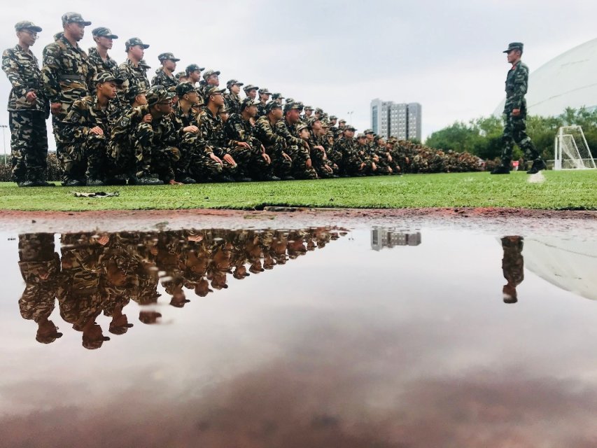 倒影中的军训 赵逸雪/摄