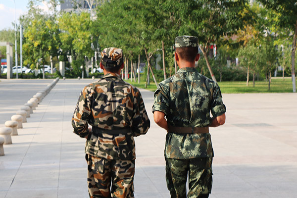 青春总是美好中夹杂着艰辛。青春如同初春的大地,生机勃勃;青春如同清晨的朝阳,熠熠生辉;青春如同皑皑的白雪,纯洁无暇。当如此美好的青春与迷彩相遇,想必那才是最适合不过的安排,用迷彩填补青春,用青春丰富迷彩。从穿上迷彩服的那刻开始,我们的肩上便多了一份责任与担当。烈日的暴晒击垮不了我们的意志;大雨的瓢泼涣散不了我们的信念;挥洒的汗水泯灭不了我们的信心。 “即使身体不行,也要勇敢的站到军训的行列中来,就算倒下了,也要像一座山,一道岭!”军人就应该拥有钢铁一般的斗志与信念。