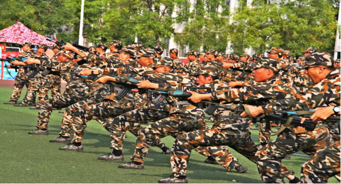在认真教授军体拳动作的教官 赵瑞祥/摄