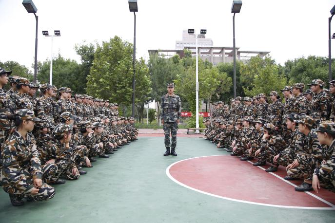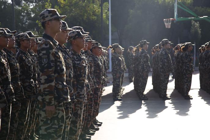 跨立稍息立正,口令引吾练。