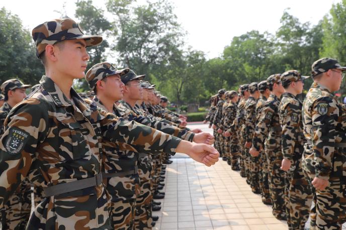 训练场上教官们洪亮的指令声,燃烧了同学们的斗志,沸腾了同学们的热血。阳光总在风雨后,历过磨炼,经过训练,方能成长,亦能成熟。同学们在整齐划一的队伍里,尽管纪律严格、顶着烈日、挥汗如雨,可依然热情不减,依然活力四射,依然精神抖擞,依然认真而又努力的学习训练每一个动作。这是一种执着的精神,亦是一种顽强的抗争。