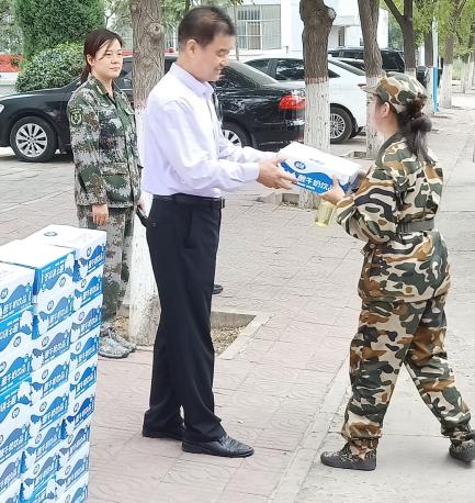 拜发奎书记在慰问中指出:同学们的军训生活即将结束,今年适逢宁夏回族自治区成立60周年暨宁夏大学60周年校庆,18级全体新生能够亲历是一件幸事、喜事。拜发奎书记看到同学们整齐有序的队列和良好的精神风貌,感到十分振奋,并且赞扬了大家在军训期间的优异表现。随后,拜发奎书记为同学们发放了慰问饮品。