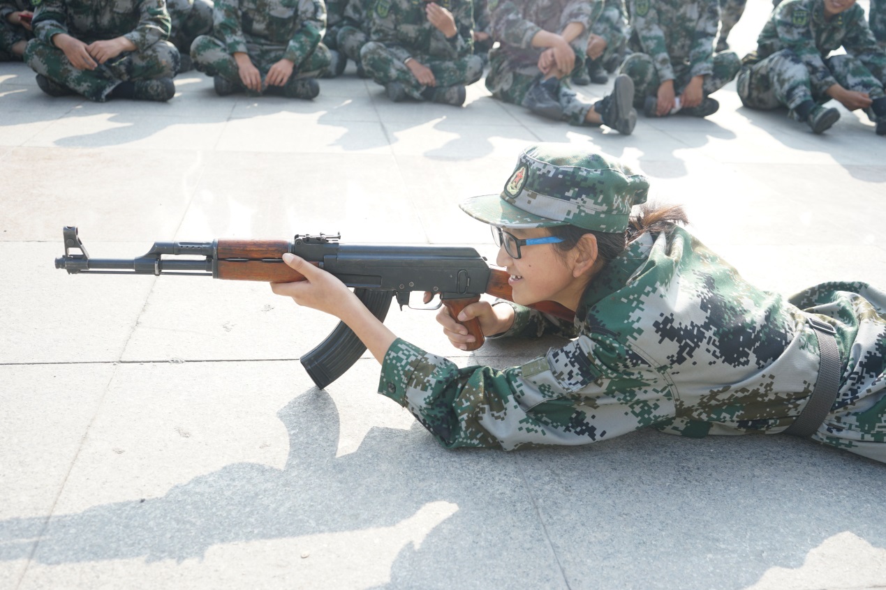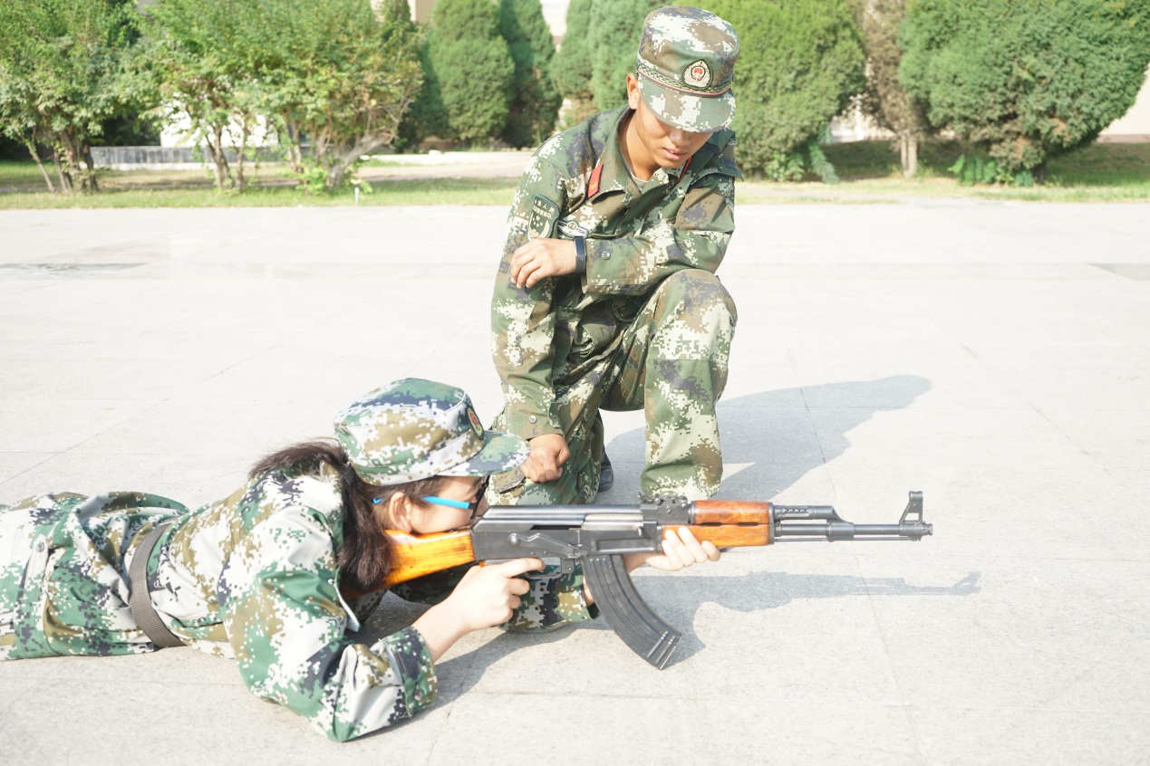 训练虽苦,但有幸体验实弹演练,同学们都格外严格按照教官指示,纠正错误姿势,争取达到军人的标准。