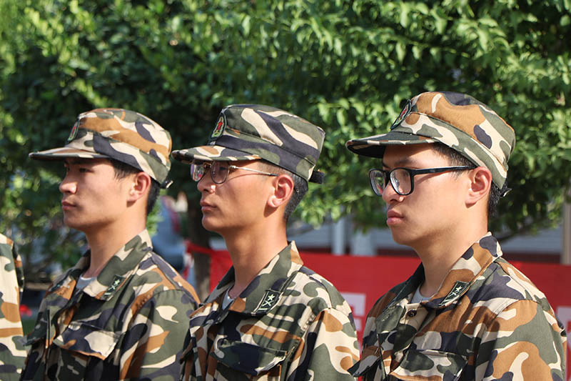 回想今日,被迷彩包围的五四广场早已不堪重负,千万双脚印在他英俊的脸庞上留下践踏的痕迹,无数次气贯长虹的呐喊声将他的灵魂震撼。那广场上矗立着一尊尊面容肃穆的雕塑不禁令人望而生畏,从稍息、立正、跨立到齐步走、跑步走,这十天的军训让我们这块试金石经历了火的淬炼,雨的洗礼。终于,物电学子们迎来了新的挑战,新的开始。