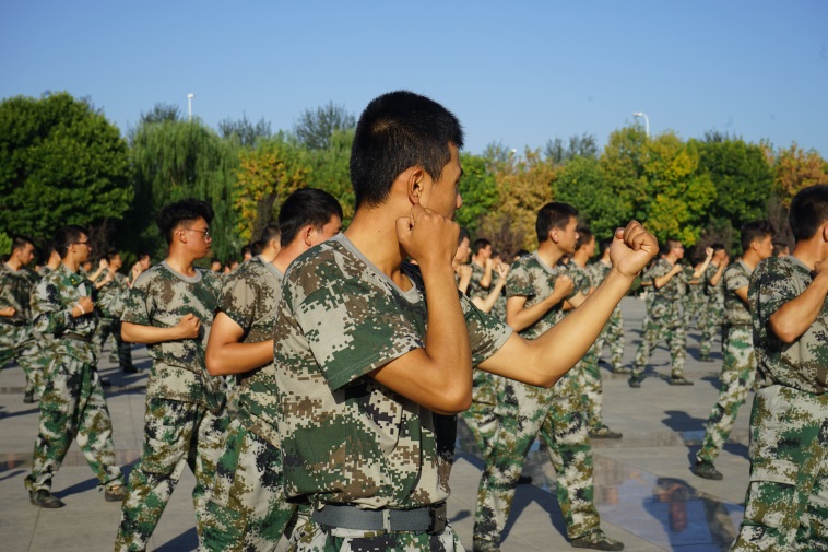草丛间,大树下,隐约闪过几道身影——那是军训的我们。帽檐下、衣领处、裤腿间,那黑白鲜明的分层透露出我们这几天训练的艰苦——烈日下的军姿,匍匐在地的射击动作,和那起步正步走的绰绰身影,无时无刻不在我的心中荡漾。