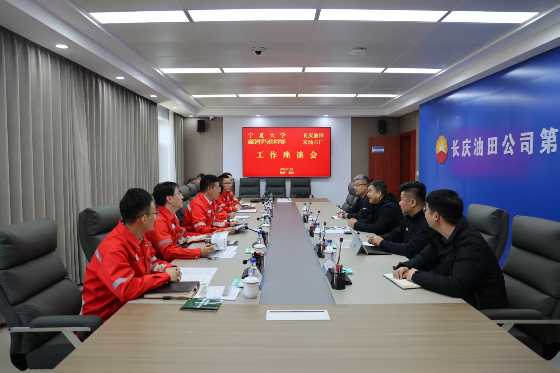 【宁夏大学新闻中心讯 前沿科学与技术学部】为深入贯彻落实党的二十届四中全会精神,进一步加强高校与企业间的优势互补与资源共享,推动校企党建合作向深层次、高质量方向发展。12月1日上午,前沿科学与技术学部党委书记马建宏率队赴长庆油田第六采油厂党委开展党建交流活动。长庆油田第六采油厂厂长、党委副书记南小东,以及办公室(党委办公室)、党委组织部(人事部)、机关党总支等相关职能部门负责人,与学部直属党支部书记及相关办公室负责人共同参与本次交流。